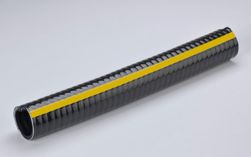黑色带黄色条纹软管,特殊PVC复合材质,螺旋钢丝和聚酯纤维网双重增强。 内外壁光滑,柔韧,易操作。耐低温 。